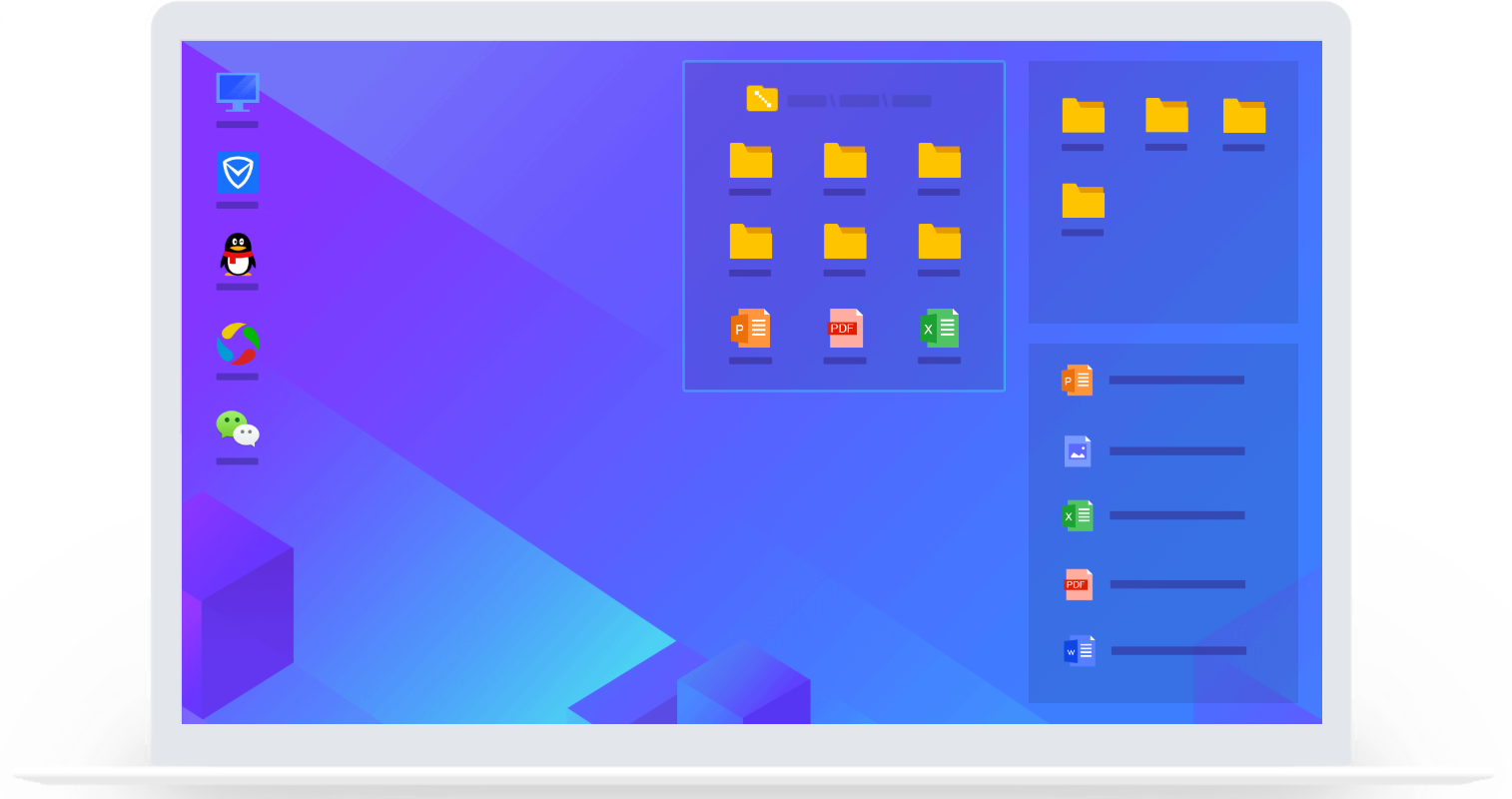 后来静下心想了一下桌面和打开文件夹有什么不一样的,才发现原来自己在桌面还装了一个腾讯的桌面整理,实话实说,这个的确是个好用的小工具。