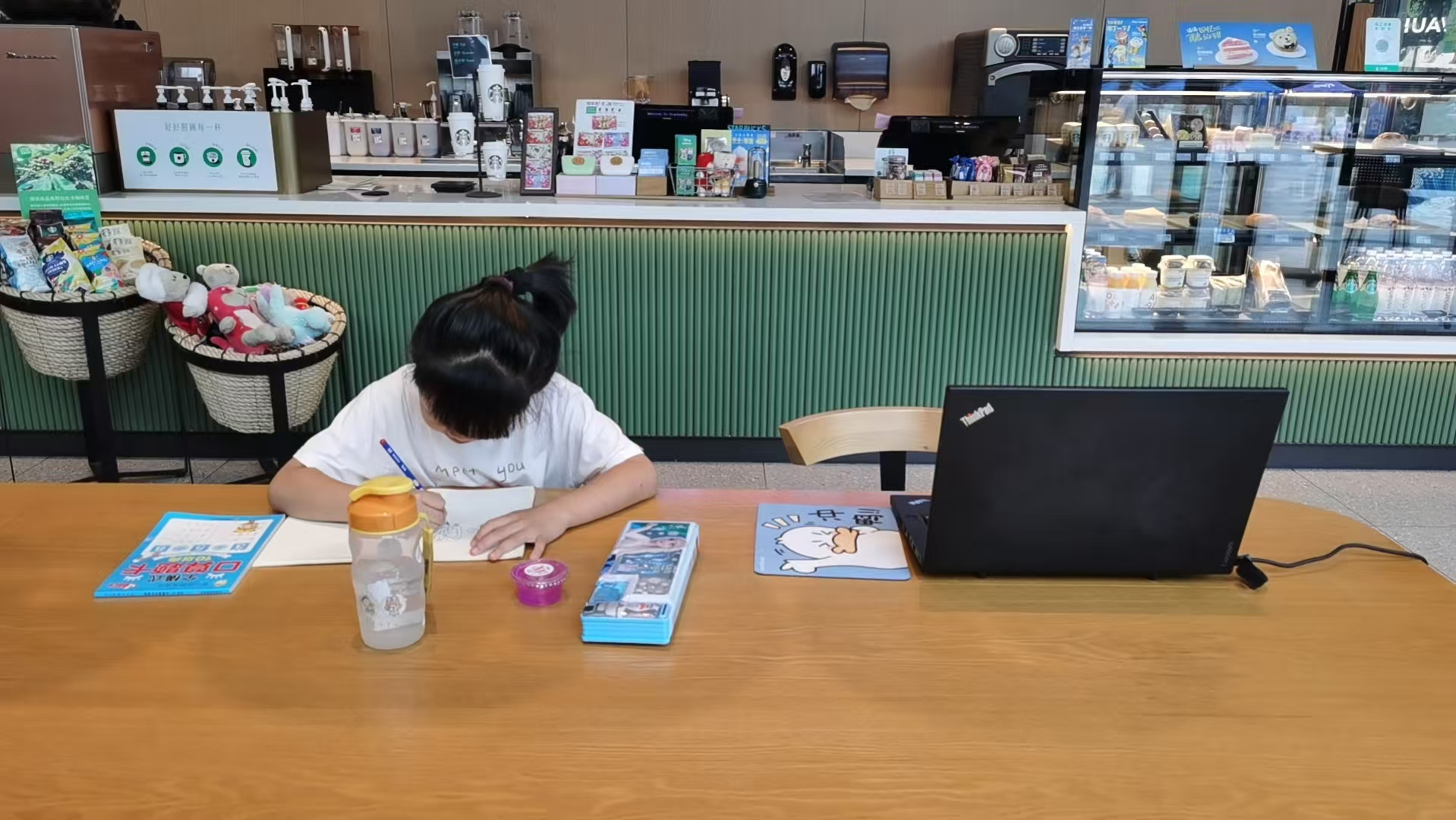 外面将近 40 度的似火艳阳把我们的户外活动彻底给劝退了,今天尝试着带女儿过来家里旁边的星巴克,她在画画做练习题,我在忙自己的一些事情,看起来也算是一个挺好的选择。