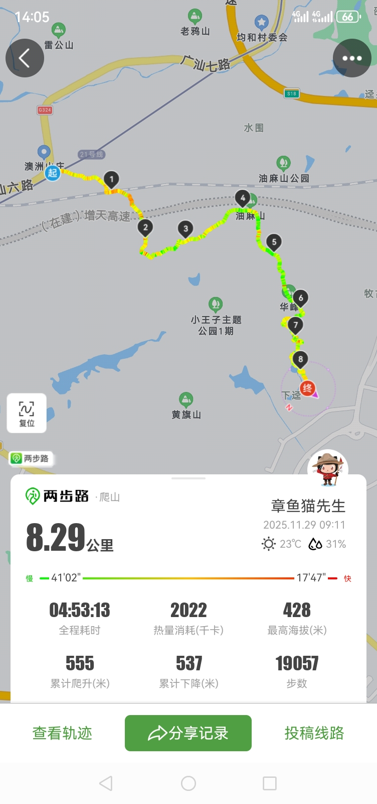总体来说,这应该是个人在 2025 年爬过的难度最大的一次山,三个一年级的孩子加上 4 个大人历经 5 个小时,终于是爬完了前半段,在华峰寺休息了大半个小时,一拨人才慢悠悠的下山,回家。