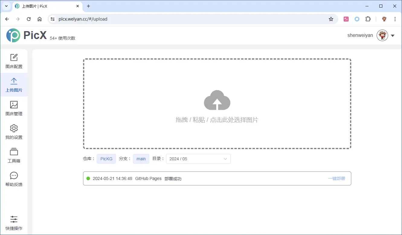 基于以上的步骤,个人成功部署的一个 PicX 站点,以供参考和使用: