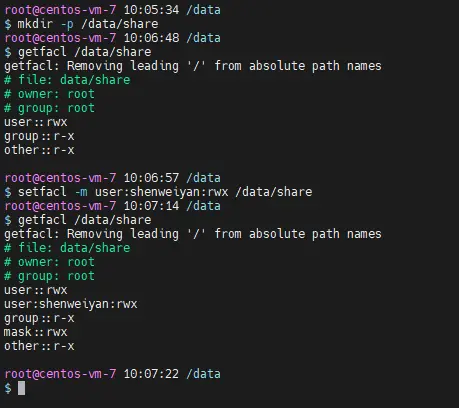 $ setfacl -m user:shenweiyan:rwx /data/share